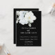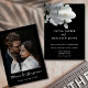 Convite Casamento Preto Moderno de Foto Floral Branco Eleg