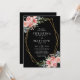 Convite Casamento Preto Rosa Bege Floral Aquarela
