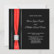 Convite de casamento preto com laço vermelho e acabamento em diamante. Este convite de casamento preto e vermelho é facilmente personalizado para o seu evento, adicionando detalhes do evento, estilo de fonte, tamanho e cor da fonte e texto.