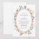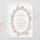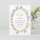 Este design apresenta uma delicada disposição em aquarela de rosas rosa corado e flores de pêssego suaves. Folhas azul-ardósia desbotadas e ramalhetes arejados criam uma estética romântica e etérea perfeita para um evento de primavera. A paleta é equilibrada com tons pastéis suaves, evocando uma sensação de calma e beleza atemporal.