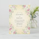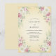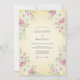 Este design apresenta um fundo creme quente adornado com delicados borrifos de flores em aquarela em cada canto. Rosas suaves brancas e rosa pálido estão aninhadas entre folhas de verde-sage, criando uma estética romântica e arejada. O estilo pintado evoca um charme vintage atemporal, perfeito para um evento ao ar livre ensolarado ou sazonal.