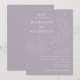 Convites de casamento botânicos com seus nomes e detalhes de casamento em letras brancas divididos por uma videira de folhas esboçadas com fundo roxo empoeirado. Os elegantes convites de casamento coordenam-se com a nossa coleção de casamentos de Folhas em Cascata.