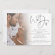 Script Minimalista Nós Nos Casamos Código QR de Foto de Casamento. Adicione seu código QR ao site do seu casamento no verso, o que torna esta uma opção conveniente para que seus convidados respondam e vejam todos os detalhes sem a necessidade de cartões separados de RSVP e detalhes. Seu código QR será gerado automaticamente para atualizar o código de exemplo no design, quando você simplesmente alterar o URL de exemplo no modelo com o URL do seu próprio site de casamento. Basta substituir a foto de exemplo pela sua favorita. Uma camada de sobreposição de gradiente está sobre a sua foto, de modo que ela desaparece à medida que atinge o centro com o texto parcialmente sobreposto no topo. Nós Nos Casamos está em um script moderno e personalize facilmente o restante do texto.