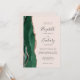 A borda esquerda deste elegante convite de casamento moderno apresenta uma esmeralda verde aquarela agate borda aparada com falsa rosa dourada. O texto personalizável combina a escrita manual de cinzas de carvão, fontes em copperplate e itálico em um fundo cor-de-rosa pincelado. O verso fornece espaço para detalhes do casamento em um fundo sólido de blush, junto com um código QR que os convidados podem digitalizar para visitar seu site e RSVP, o que economiza o custo de imprimir e enviar cartas RSVP separadas.