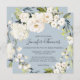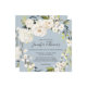 Com um popular esquema de cores neutro, este design de convite de casamento quadrado apresenta uma bela coroa de flores brancas de aquarela com um verde à direita sobre um popular fundo azul pérola empoeirado. As flores incluem rosas, híbridos e florais mistos correspondentes a um efeito de jardim fresco. Os emparelhamentos de texto usados neste design apresentam os nomes da noiva e do noivo de forma destacada usando um rosto de tipo manuscrito. Personalize o modelo de texto fácil de usar com seus detalhes de casamento.