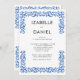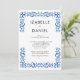 Convites de casamento modernos apresentam moldura de ornamento vintage azul com flores azuis. Aproveite!