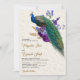 Incêndio aos seus convidados com este elegante convite de casamento, com um magnífico pavão com flores bonitas. Basta adicionar os detalhes do seu evento neste modelo fácil de usar para torná-lo um convite de tipo único. Sacudir a placa para revelar uma arte rústica de dissociação na parte de trás da placa.