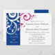 Celebre o seu casamento com graça e sofisticação com este rico e bonito jogo de casamento royal azul e fuchsia, brilhante e rosa. Apresenta um motif floral de videira robusta e enrolada ao longo do lado, com efeito inverso sobre um fundo branco. Todos os Designs Copyright © www.CustomInvitesOnline.com Este design está disponível como uma coleção completa!