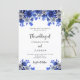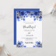 Um fundo branco, decorado com flores azuis e brancas. Personalize e adicione seus nomes e detalhes. Fundo: fundo azul.