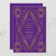 Elegante, design de cartão vintage com um estilo sofisticado de arte, sofisticado em ouro, ornamentos reais de pulur-de-lis em fundo roxo. Use a ferramenta Personalizar para adicionar suas informações. Para encontrar itens, por favor, visite minha Coleção Gatsby do Excelente Real Dourado.