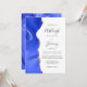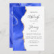 A borda esquerda deste elegante convite de casamento moderno apresenta uma real cor azul-d-água agata borda aparada com falso brilho dourado. O texto personalizável combina manuscrito, copperplate e fontes itálicas em cinzas de carvão em um fundo branco. O lado inverso apresenta um design real azul e dourado.
