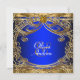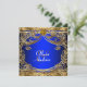 Belo ouro espirra o convite para o casamento do azul real e do ouro. Este elegante convite de casamento royal blue e gold glam é facilmente personalizado para o seu evento, simplesmente escolhendo o botão "Personalizar!" para começar a adicionar os detalhes do seu evento, estilo de fonte, tamanho de fonte e cor e texto. Observe que todos os adesivos, cartões e designs de convite que você encontrará no Zazzle são gráficos impressos sem joias reais, arcos, levantados, gravados, ou peças ou peças adicionadas.