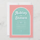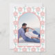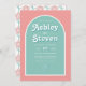 Este convite de casamento de foto é inspirado nos anos 70, apresentando tons retro groovy rosa-pêssego e aqua pérola. Ele incorpora um estilo retrô com um toque de vibrações dos anos setenta, apresentado em cores pastéis suaves. A frente do convite exibe um design em arco junto com o seu texto personalizado, enquanto a parte de trás apresenta um padrão de flor retrô e uma foto do casal.