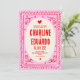 Convite Casamento Retroativo Cinzento-Rosa Desenhado Mão E