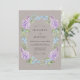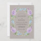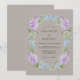 Raminhos delicados de lavanda e flores azul-celeste artisticamente dispostos em uma grinalda circular evocam um senso de romance atemporal. A paleta de cores suaves deste design estabelece um tom sereno e elegante para o seu dia especial. O estilo de aquarela arejada adiciona um toque de beleza orgânica.