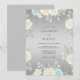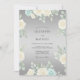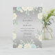 Delicadas flores de creme e azul pálido adornam um fundo cinza suave, evocando uma sensação de romance suave. Este design apresenta arranjos florais exuberantes e folhagens sutis, criando uma atmosfera elegante e serena para uma ocasião especial.