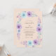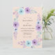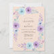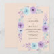 Um arranjo delicado de flores em flor em tons suaves de lavanda e azul gelado adorna um fundo quente de pêssego, evocando um sentido de romance etéreo. Folhas exuberantes em verde suave complementam as texturas suaves das pétalas, criando uma atmosfera terna e encantadora para o seu dia especial.