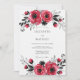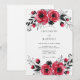 Este design apresenta anêmonas carmesim impressionantes com centros de carvão profundo, criando uma estética ousada e sofisticada. O estilo de aquarela pictórica é acentuado por folhas escuras e rabiscadas e delicados ramos de bagas para um toque de drama. Uma paleta de alto contraste de vermelho rubi e preto sobre uma base branca limpa evoca uma atmosfera atemporal e romântica.