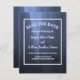 Casamento romântico personalizado salve o cartão de data em Blue Chic. Ver itens correspondentes na Coleção de Casamentos Românticos Azul Elegante.