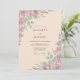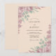 Este design apresenta um fundo bege suave adornado com flores delicadas em aquarela. Rosas bege rosa desbotado e raminhos de folhagem criam uma estética romântica e inspirada no vintage. Folhas elegantes de eucalipto e pequenos detalhes botânicos proporcionam um toque natural e arejado. Esta paleta é perfeita para um evento clássico de primavera ou verão.