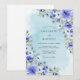 Lavagens delicadas de azul claro formam um pano de fundo suave para flores de pervinca vibrantes e violetas profundas. Um verde exuberante se entrelaça com pétalas pictóricas, criando uma atmosfera etérea e romântica. Este design evoca uma sensação de elegância serena, perfeito para um evento sofisticado.