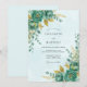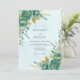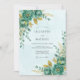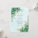 Evoque um sentido de encantamento com este design etéreo apresentando flores de teal exuberantes e folhagens douradas. Lavagens delicadas de aquarela criam uma atmosfera sonhadora e romântica perfeita para uma celebração sofisticada.