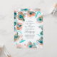 Romântica de flores aquáticas convite para casamento com coroa floral lacrimogênea no lado frontal e padrão de flores aquáticas no lado de trás.