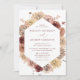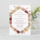 Convites elegantes para o casamento no outono, com os seus detalhes de casamento rodeados por um quadro geométrico de flores de aquarela e folhagem em tons de escova, burgundy, terracotta, marsala e castanho. A paleta de cores morna e temperada torna estes convites perfeitos para o seu verão ou casamento outono tardio.