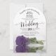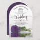 Este belo convite para o casamento mostra uma fotografia de uma longa rosa púrpura de ametista, deitada de lado, refletindo numa piscina de água com ondulações e ondas. A tipografia apresenta uma elegante caligrafia de escrita e a redação é um fazer formal deste convite tanto moderno quanto clássico. A parte de trás é uma linda cor roxa moscada. Design funciona perfeitamente com o trendy arch cut. É uma maneira maravilhosa de convidar seus amigos e família para compartilhar seu dia especial.