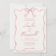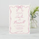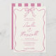 Ponha o tom para o seu dia de sonho com este adorável convite de casamento! Com uma bela borda de arco de fita colete rosa desenhada à mão, é doce, na moda, e totalmente você. Personalize com seus detalhes para criar o convite perfeito para sua comemoração romântica!