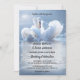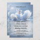 Convite romântico de casamento com dois cisnes apaixonados por um lago ou lago iluminado pelo sol. Bonita para um casamento com temas azuis, um parque ou uma celebração do lado do lago. Este convite tem uma placa RSVP correspondente.