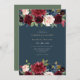 Este convite para o casamento apresenta uma elegante cor d'água rustic burgundy e florais azuis marinho com uma combinação de fontes simples e eterno. É o convite perfeito para o casal clássico romântico, mas pode ser modificado para se adequar a qualquer evento que você tenha em mente. Mantenha a parte de trás verde ou adicione sua própria foto na parte de trás para um toque pessoal.