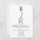 Convite de casamento moderno, elegante e único com silhueta de cão Greyhound em folha de ouro e iniciais gigantes personalizadas da noiva e do noivo.