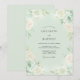 Delicadas flores em branco cremoso e verde musgo suave adornam um fundo verde pálido, criando uma atmosfera etérea e romântica. Este design evoca uma sensação suave e aérea, perfeita para uma ocasião de primavera ou romântica.
