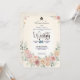 Rosas românticas cor-de-rosa e botânicos suaves em aquarela enquadram uma graciosa silhueta de um pedido de casamento, criando uma estética de jardim boêmio elegante para um anúncio de casamento de primavera.Este design reflete o estilo tradicional de papelaria de casamento romântico, onde uma moldura floral envolve suavemente a área de texto central. Peônias e ranúnculos suaves em aquarela em tons de rosa empoeirado, rosa-claro e pêssego se misturam com folhagens arejadas de eucalipto em tons de sage suave, criando uma composição botânica equilibrada. O fundo aparece como um tom de pergaminho creme quente, dando ao layout um visual refinado e inspirado na herança, frequentemente visto em papelaria de casamento de jardim clássico.No centro do design, uma silhueta elegante de um casal fazendo um pedido de casamento adiciona um ponto focal narrativo, enquanto a letra cursiva fluida combinada com uma tipografia serifada moderna estabelece uma hierarquia comumente usada em layouts de convite formais - cursiva para ênfase emocional e texto serifado para legibilidade.E