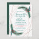 Celebre o seu casamento com este inverno, a mão moderna pintou o padrão de ilustração de Natal em verde e vermelho tradicional com galhos de aquarelas e pinheiros dourados e amora vermelha com um quadro de folha de rosa de ouro abstrato geométrico.