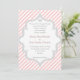 Elegante cor-de-rosa, branco, convite para casamento de listras de cinza. Um na moda, moderno design de padrão striped com faixas brancas e cor-de-rosa, um coração de cinza e seu texto em um quadro. Contemporâneo, mas com um olhar vintage, de certo modo. Você pode alterar o plano de fundo e a cor do texto escolhendo entre mais de 200 cores do gráfico de cores do Zazzle. Esta classe é parte de um conjunto de casamentos e é perfeita para todas as estações de casamentos: primavera, verão, outono e inverno.