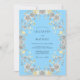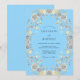 Este design apresenta um vibrante fundo azul azure adornado com uma delicada bordadura de rosas em tons suaves de cinza e branco. Acentuações amarelas brilhantes e botões dourados proporcionam um contraste alegre, criando uma estética fresca e arejada. Perfeito para um evento de primavera ou verão, o arranjo botânico oferece um visual sofisticado e eterno.