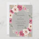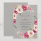 Um cenário cinza sofisticado define um tom sombrio e elegante para este design. Rosas magenta e creme exuberantes são arranjadas com folhagem verde suave e folhagem dourada sutil para criar um efeito romântico e pictórico. Esta estética botânica é perfeita para casais que buscam um visual clássico e refinado para seu evento especial.