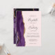A borda esquerda deste elegante convite de casamento moderno apresenta uma cor d'água roxa, borda agitada, aparada com falso brilho dourado. O texto personalizável combina letra de escrita manual, chapa de impressão e fontes itálicas em cinzas de carvão em um fundo rosa pálido e pálido. O verso apresenta um design de agate roxo e dourado correspondente.