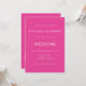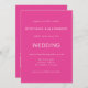 Cor rosa quente ou qualquer convite de casamento a cores simples, imprimível ou impresso. Um design tipográfico minimalista totalmente personalizável. A cor e o tipo da fonte podem ser alterados através do menu de edição. Você também pode alterar as cores do texto e do plano de fundo em ambos os lados, se desejar. Adicione seu código QR ao seu site de casamento no verso como uma opção conveniente para seus convidados para RSVP. Altere simplesmente o URL do exemplo para o seu próprio e o seu código será gerado automaticamente.