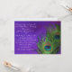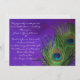 Use estes convites impressionantes do casamento do pavão convidar seus amigos e família a seu casamento. Este design da pena do pavão em seus cartões adicionará um toque especial a seu casamento temático do pavão. Esta vida imóvel tem um fundo roxo muito original da folha com penas dos pavões. As cores das penas do pavão são surpresa vibrante e do olhar. Cada convite vem com um envelope branco.