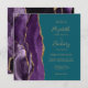 O lado esquerdo deste elegante convite de casamento quadrado moderno apresenta uma cor d'água púrpura e borda agitada com falsa brilha dourada. O texto personalizável combina manuscrito dourado, fontes em copperplate e itálico em um fundo azul lacrimogêneo. O verso apresenta um design de agate roxo e dourado correspondente.