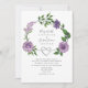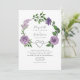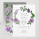 Simples, moderno, elegante, boho, convite de casamento floral roxo lavanda com coração de corda de prata e caligrafia manuscrita.
