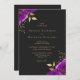 Convite Casamento Roxo Roxo Dourado Floral Escuro QR Códig