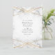 Convite de casamento com uma textura de mármore com uma estrutura geométrica de ouro e uma mármore de folha de ouro ao contrário. Ideal para qualquer tema ou casamento de jardim. O código QR no verso direciona para o seu local de casamento onde o pessoas pode aprender mais e rsvp.