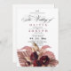 Um convite de casamento moderno, preto e branco, minimalista, com uma elegante fonte manuscrita, com caramujos e um monograma da noiva e do noivo. Clássico e elegante, simples e moderno convite.