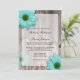Rústica Wood Grain Country Bran com Tedal Blue Daisies Convites de Casamento.