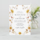 Anuncie seu dia especial com nosso convite de casamento Rustic Autumn Sunflower e Wildflower. Esta bela design mostra seus detalhes de casamento cercados por uma coroa de flores de sol pintadas manualmente, flores silvestres e uma folhagem vibrante de outono. A paleta de cores ricas de amarelo, laranja, marrom, verde e ferrugem evoca o calor e a beleza do final do verão e do outono, fazer que seja a escolha ideal para os casamentos outono. Perfeito para casais que buscam um design floral moderno com um toque de charme rústico, este convite dá o tom perfeito para sua celebração inesquecível.