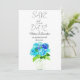 Hídrangea azul, Casamento de Cores d'Água salve a data. Hydrangea flores do casamento. Trabalho de arte pintada à mão pela artista Monika Howarth. Por favor, personalize-o com os seus detalhes.
